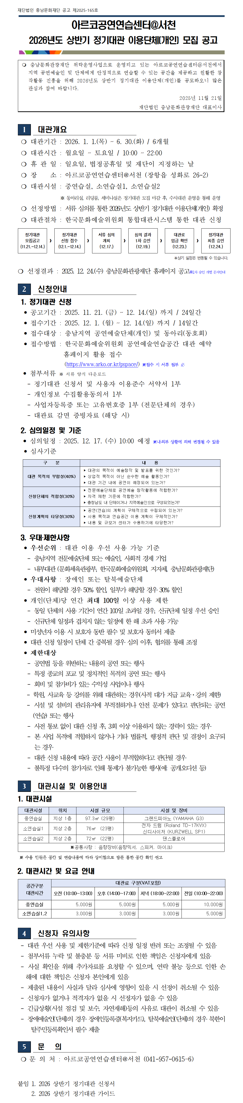[공고문]+아르코공연연습센터@서천+2026년+상반기+정기대관+이용단체(개인)+모집+공고.png