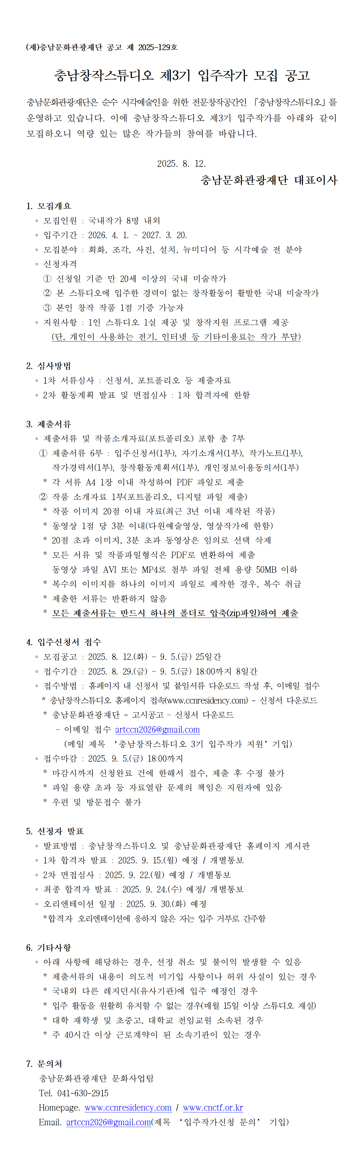 충남창작스튜디오 제3기 입주작가 모집 공고