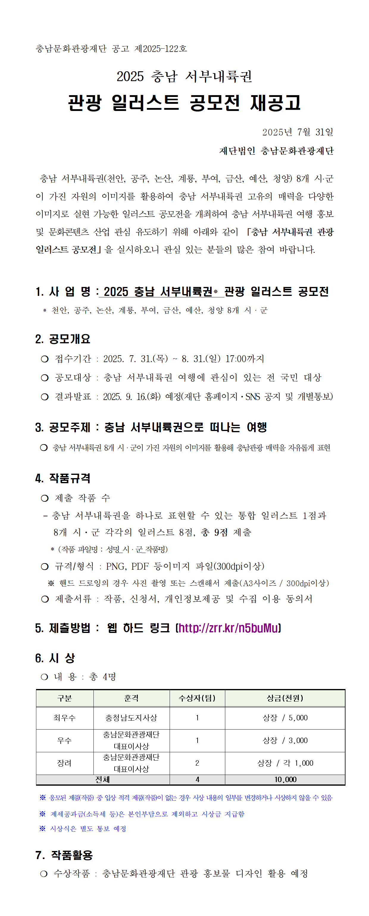 2025 충남 서부내륙권 관광 일러스트 공모전 재공고