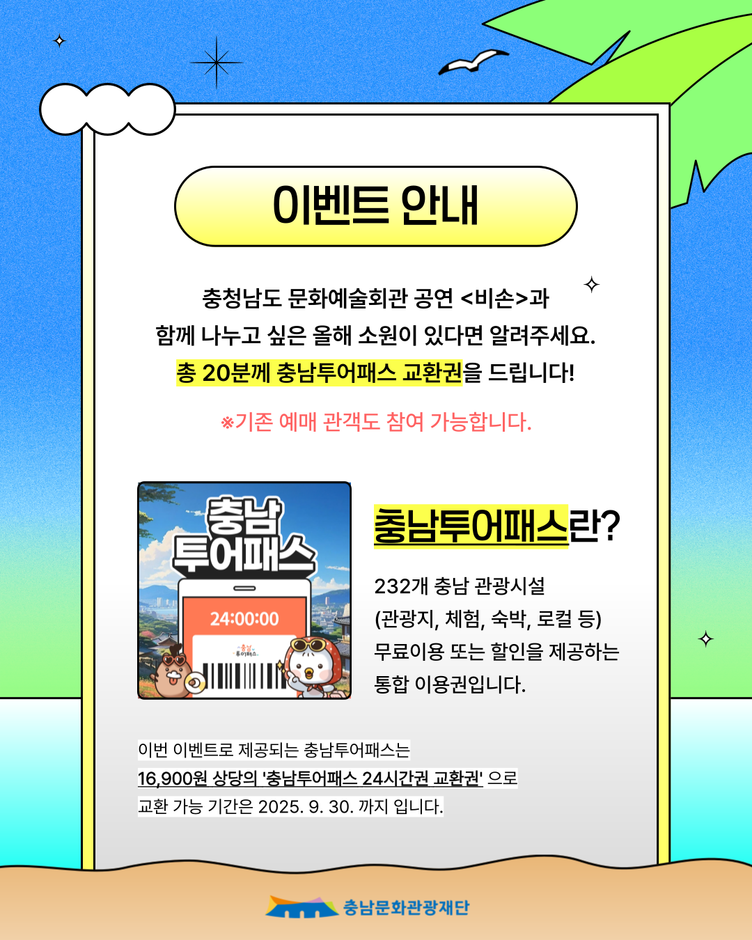 16,900원 상당의 충남투어패스로 여름 휴가도 즐겨보세요!