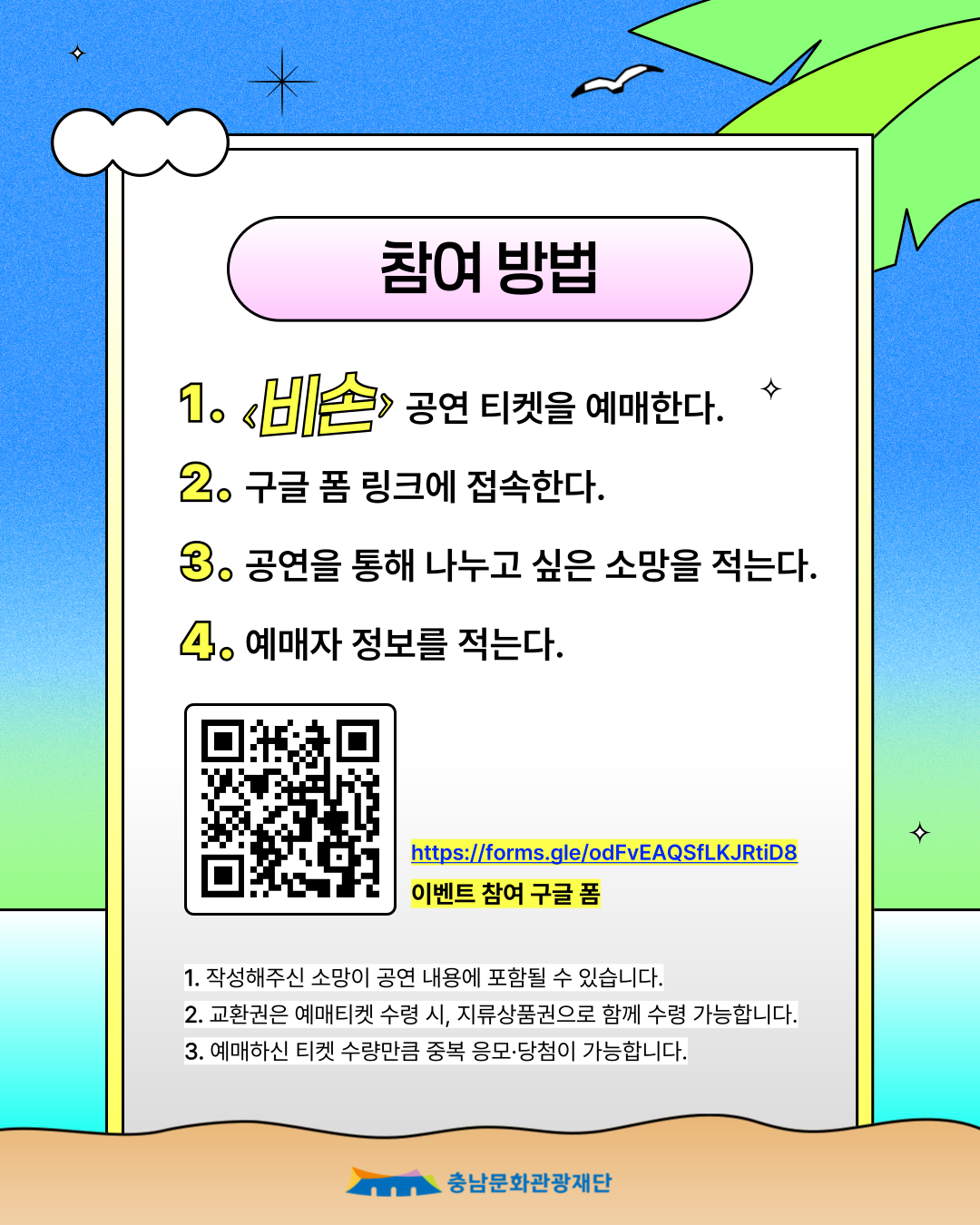 - 본 이벤트는 공연 티켓 예매자를 대상으로 진행되는 이벤트로, 예매내역 확인 불가시 추첨 대상에서 제외될 수 있습니다.