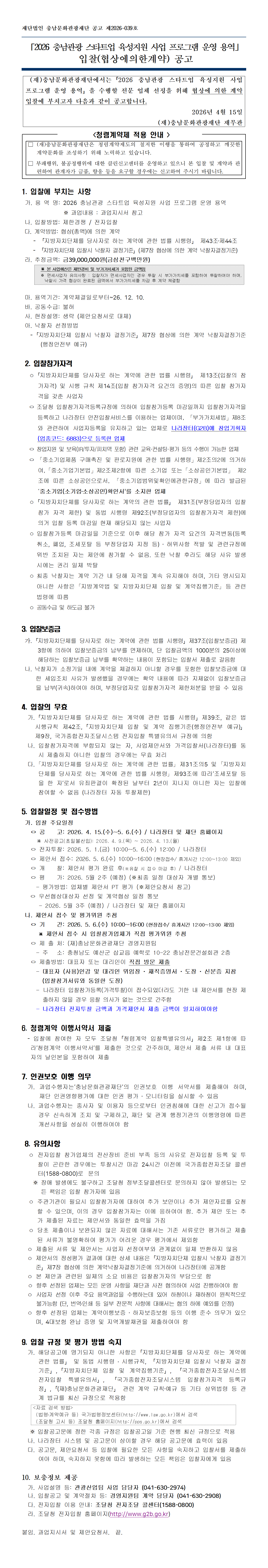 붙임1.+「2026+충남관광+스타트업+육성지원사업+프로그램+운영+용역」+입찰(협상에의한계약)+공고.png
